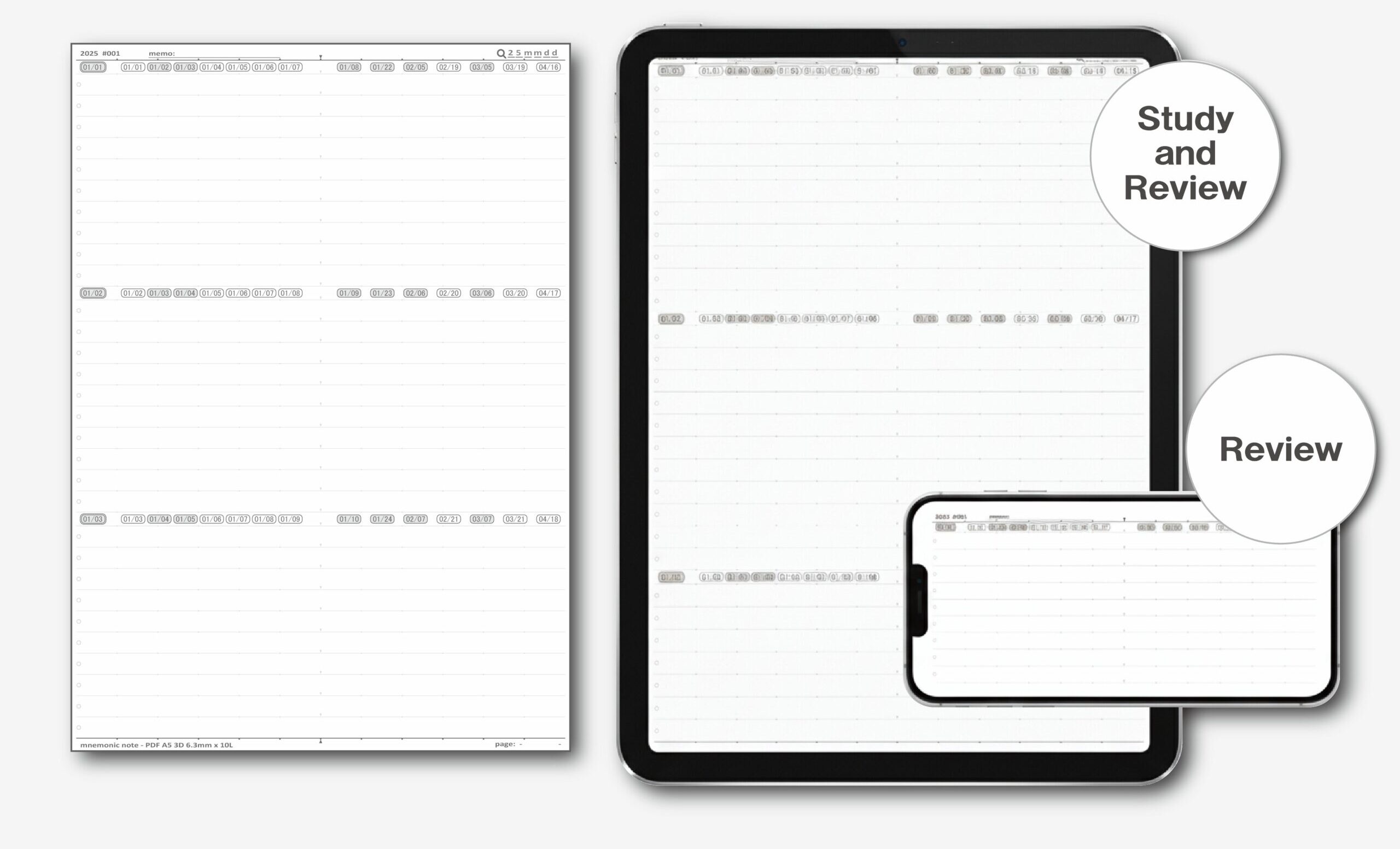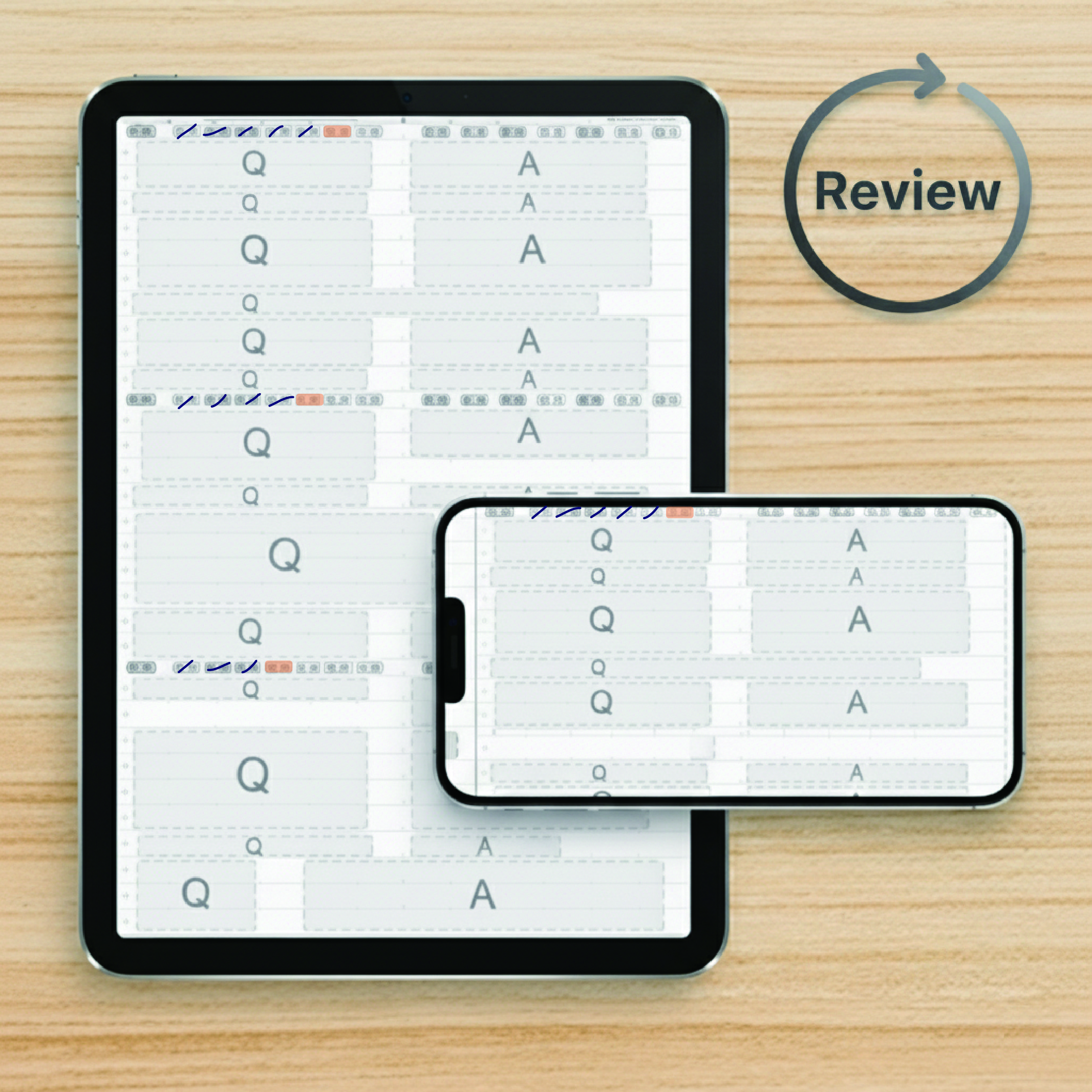 学んだことを忘れず、長期記憶に定着させるためには、「忘れる前の反復学習」がとても大切です。この効果的でシンプルな学習法をするためにこのデジタルノートフォーマットは最適です。復習のタイミングを教えてくれて、学習したことを長期記憶に定着させる手助けをしてくれます。